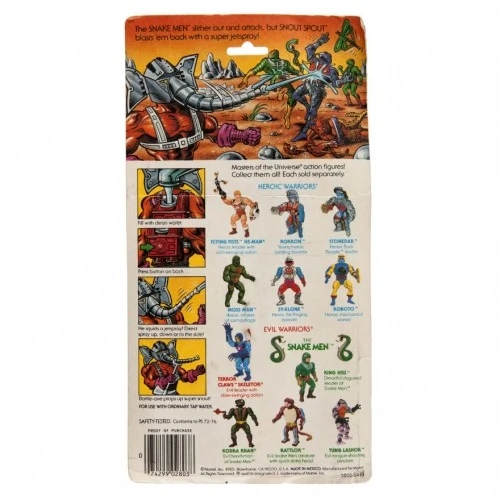 Squirted water out of the nose-trunk by pressing a button on the backpack. Fireman's axe could also be used upside-down to aim the figure's trunk.