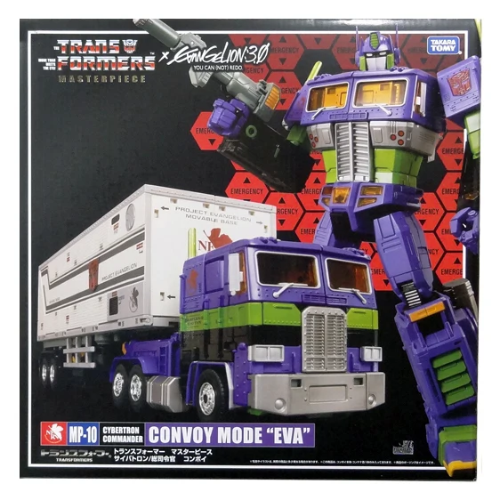 Limited to 1,000 pieces, this figure was released as part of the Transformers × Evangelion crossover. It uses the MP-10 mold with all the same accessories, decoed in the green and purple color scheme of Eva-01. The trailer, Roller, and Spike figure are done up in NERV-themed colors.