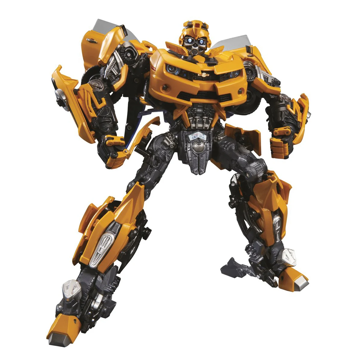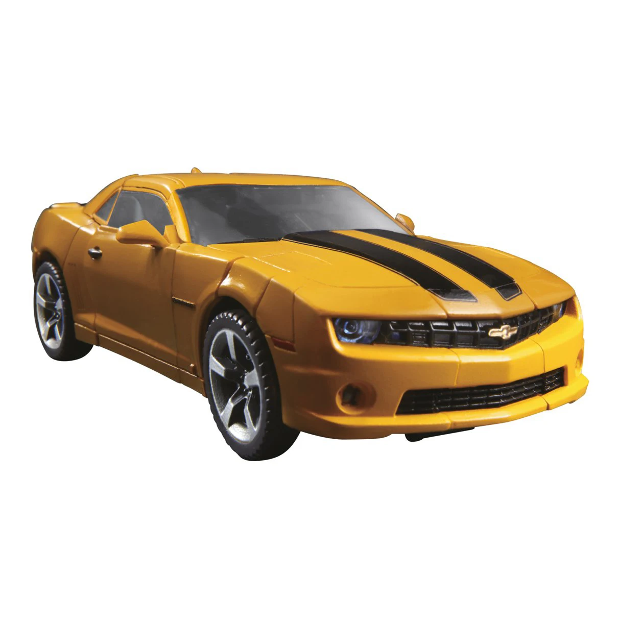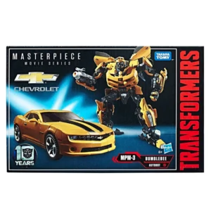 After 7 years, this Masterpiece Movie Series Bumblebee is a brand-new Masterpiece mold, based upon his body from the first live-action film. Does it convert? Does it ever! As usual, he transforms from a roughly Voyager-sized robot which scales with the Generation 1 Masterpiece Autobot Cars, into a Concept Camaro seen in the first live-action movie, and his right hand can be replaced with a Stinger Blaster. He also features die-cast parts on his bottom legs & his feet. His Stinger Blaster can store underneath it's vehicle mode. Some units feature misassembled waist tabs. Although stock photos shows his tire rims being painted silver, the actual product has tire rims painted in Chevy’s Midnight Silver, which was used as an optional paint for the 2010's Camaros. As with the Dark of the Moon Deluxe Class Neo-Scanning Bumblebee figure, he was casted in rally yellow plastic rather than the usual orange-yellow. The Japanese release omits the paint applications on the eyes to allow for light piping, and it features a less dark shading on the blaster weapon. As with most TakaraTomy toys, It also uses black screws over unpainted screws. In the United States, Canada, Australia, and Hasbro's Asian markets, Masterpiece Movie Series Bumblebee was exclusively available from Toys"R"Us, as was TakaraTomy's Japanese release. He was also initially released in the Transformers Atrium Fair in Takashimaya B2 Atrium located at Singapore, limited to 300 pieces. In Spain, meanwhile, he saw a wider release, being at least available via the Spanish subsidiaries of Amazon and Carrefour, as well as the department store chain El Corte Inglés. It's currently unknown if he was also available in stores, or limited to online purchases. In Greece, he was officially available via at least one toy store chain, aptly named simply "Toys-Shop", but again might have been available online only.