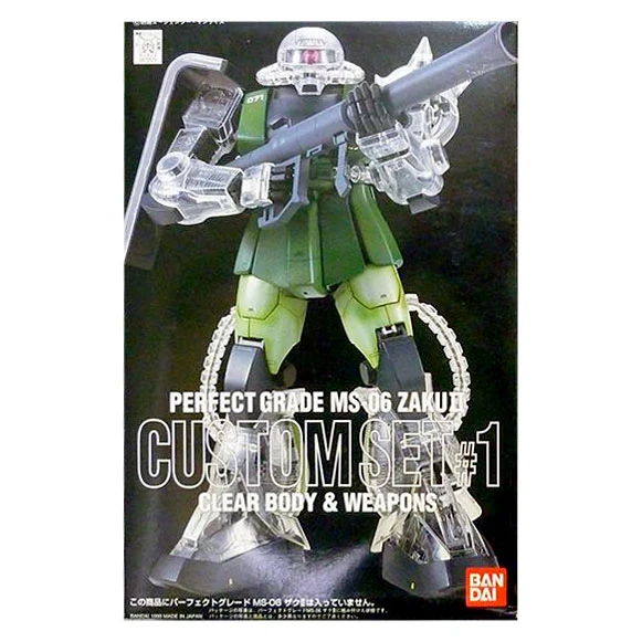 Accessory kit for PG-02/03. Contains clear armor parts for the head, arms, lower legs, and feet, plus two bazookas, a chain hammer, and a beam javelin.