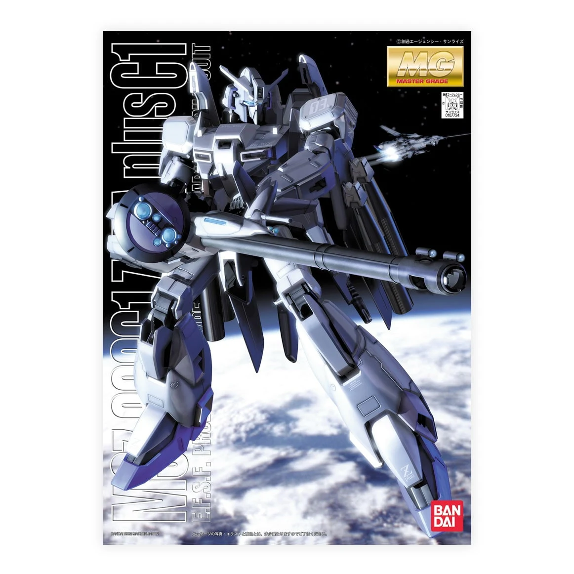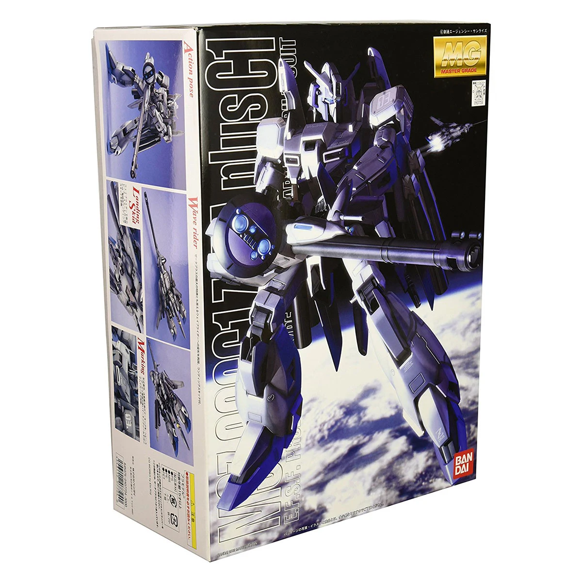A limited mass production variant of the Zeta Gundam, featured in the photonovel Mobile Suit Gundam Sentinel. A design that can transform from robot to a fighter craft like mode, its muted gray coloring is reminiscent of modern day aircraft. The C1 type features a thruster arrangement for use in space and also a massive beam smart gun. Runner x16, Stickers, Dry transfers, Instruction Manual.