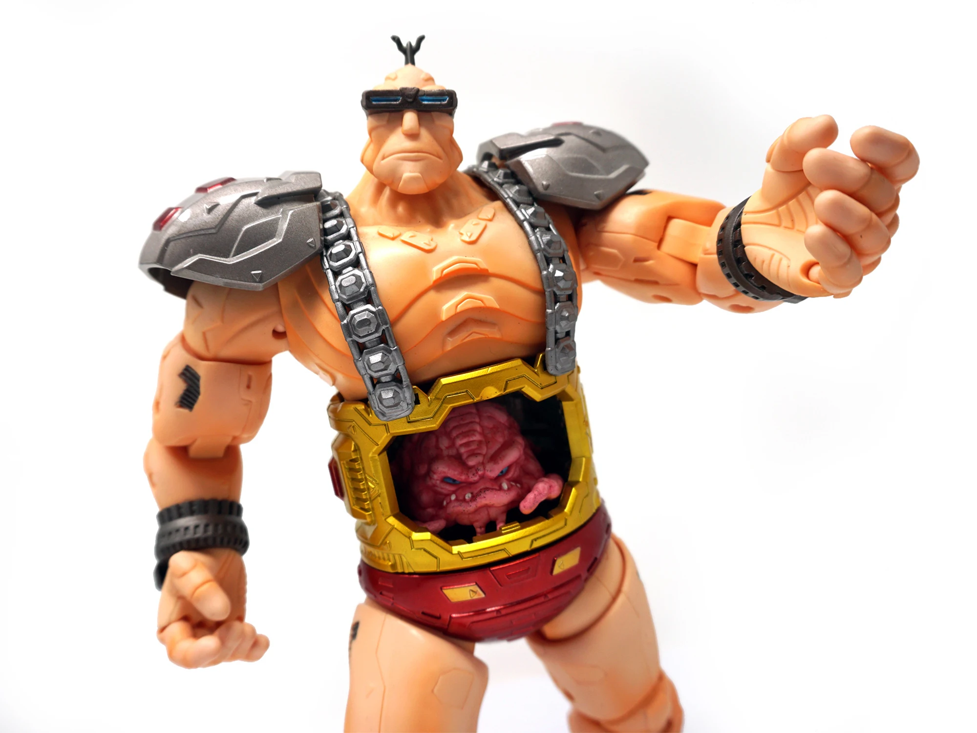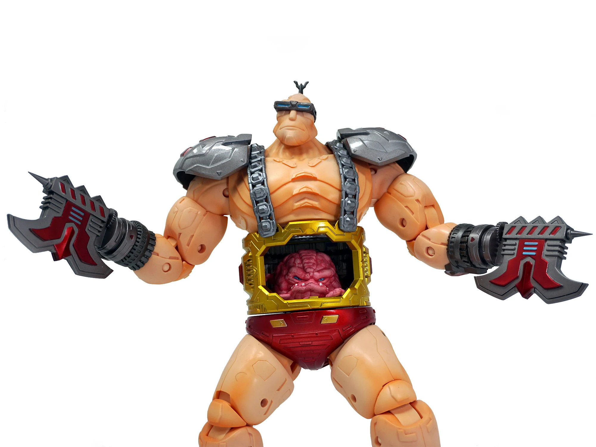 Action figure made of pvc and with diecast metal parts, it has multiple articulation points, with magnet and led light for Krang bay.