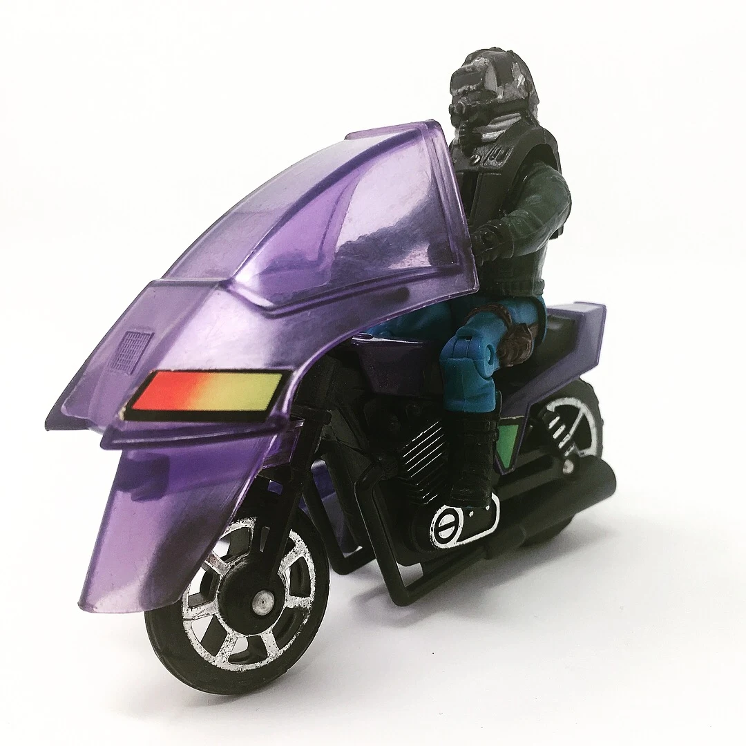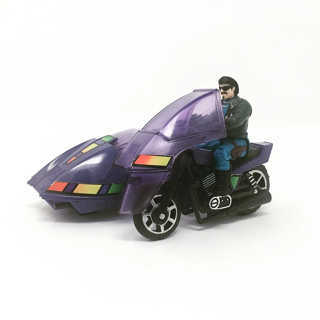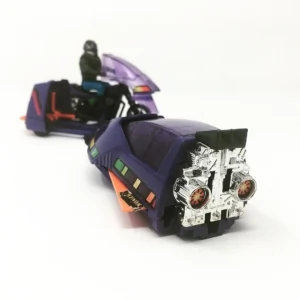 A motorcycle with a releasable submarine sidecar and uses the Stiletto mask that shoots armor-piercing harpoons. First show appearance: episode 1.