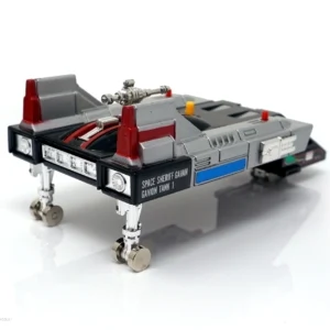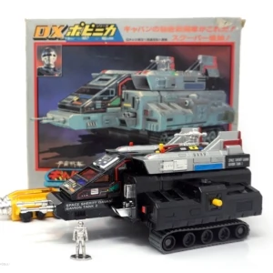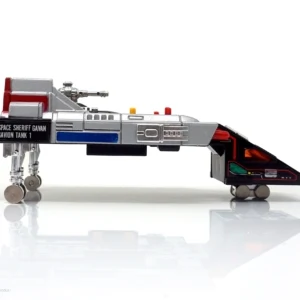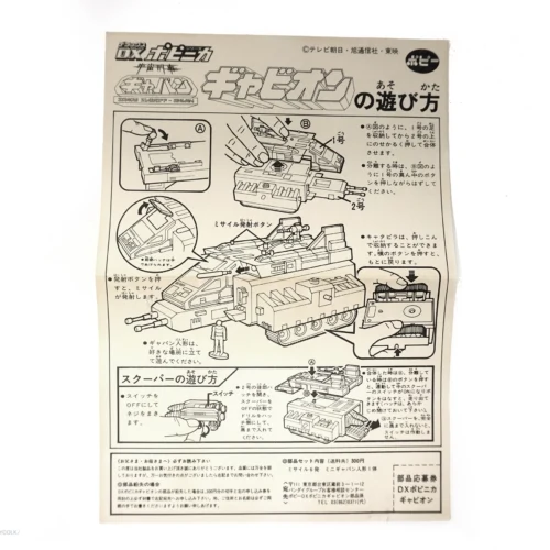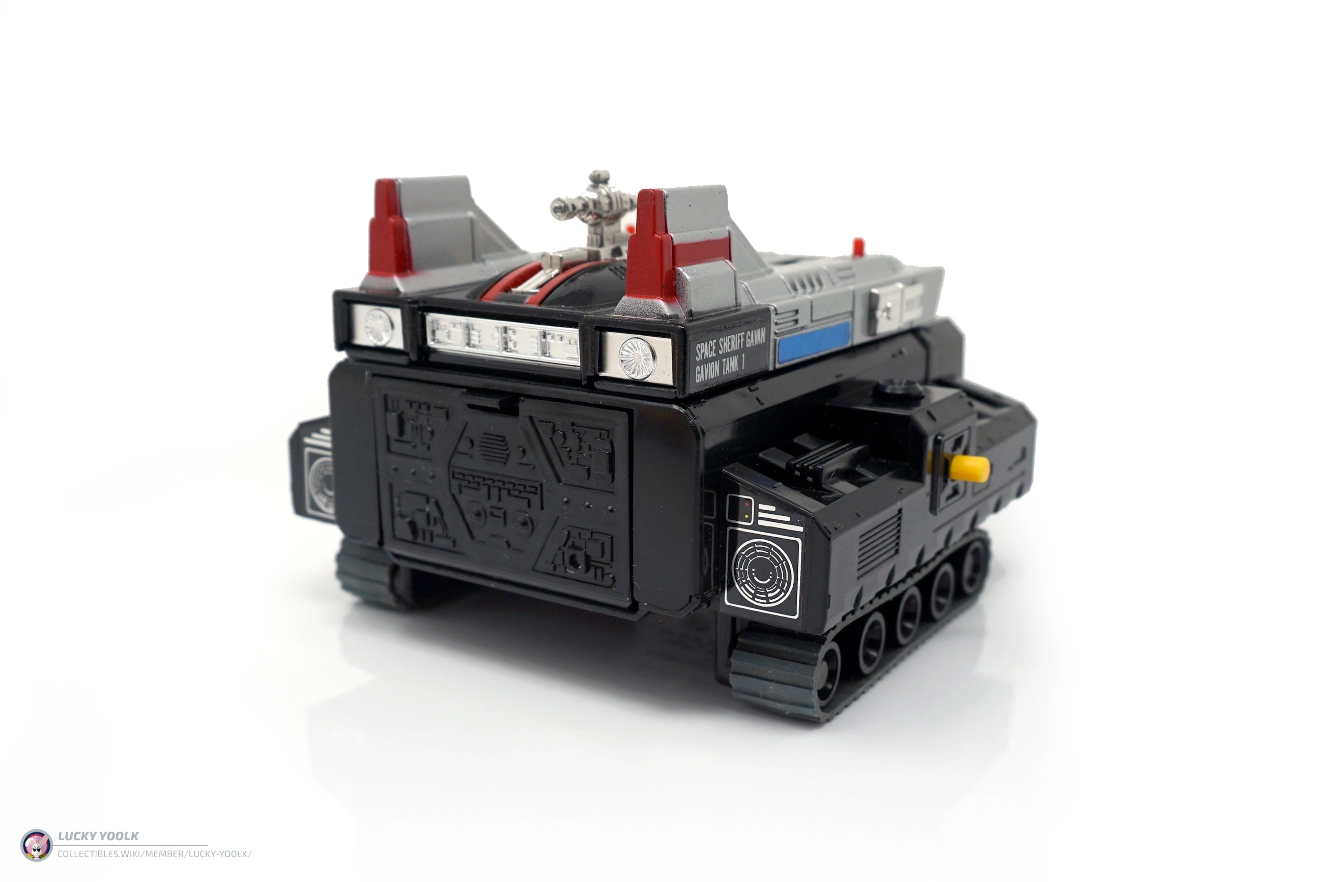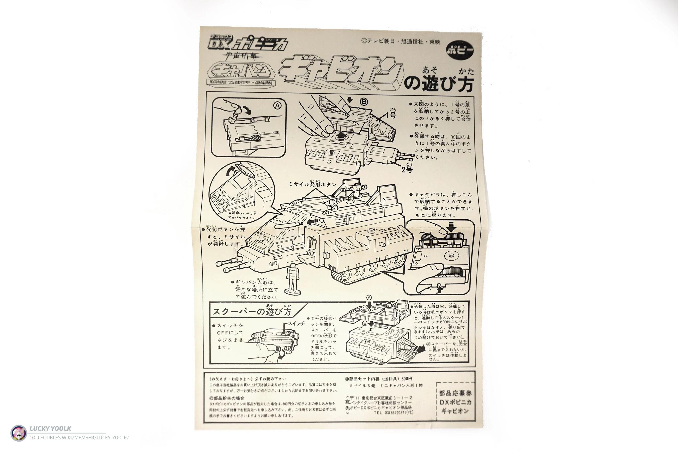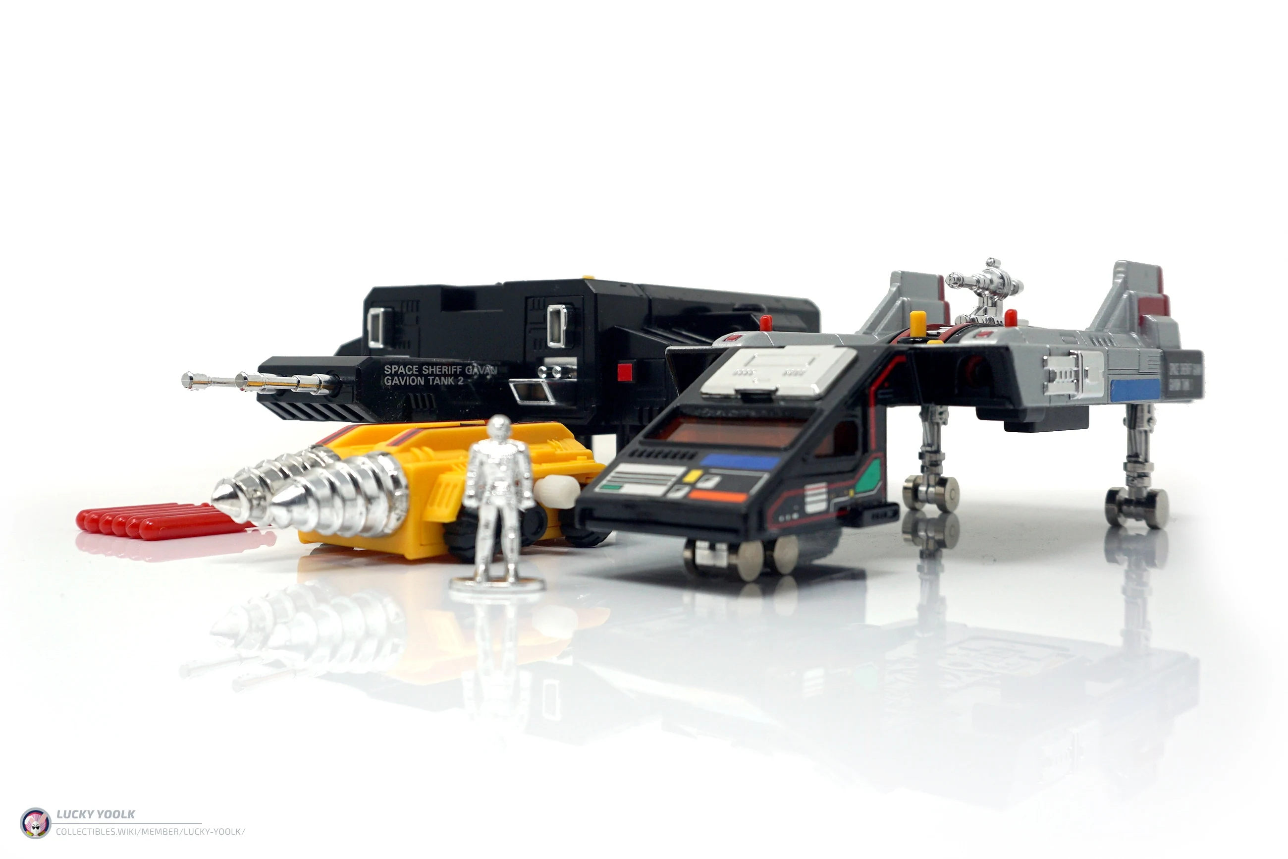 Popy PC-28 Gavion is a spaceship/tank from Space Sheriff Gavan's Tokusatsu. It's mostly die-cast metal, the double drill engine fits inside, spacheship can launch missiles and you can find a Mini Gavan sitting inside the cockpit, a push button release the spaceship and another one release the caterpillars. It comes with notice, 6 missiles and a Gavan mini figure.