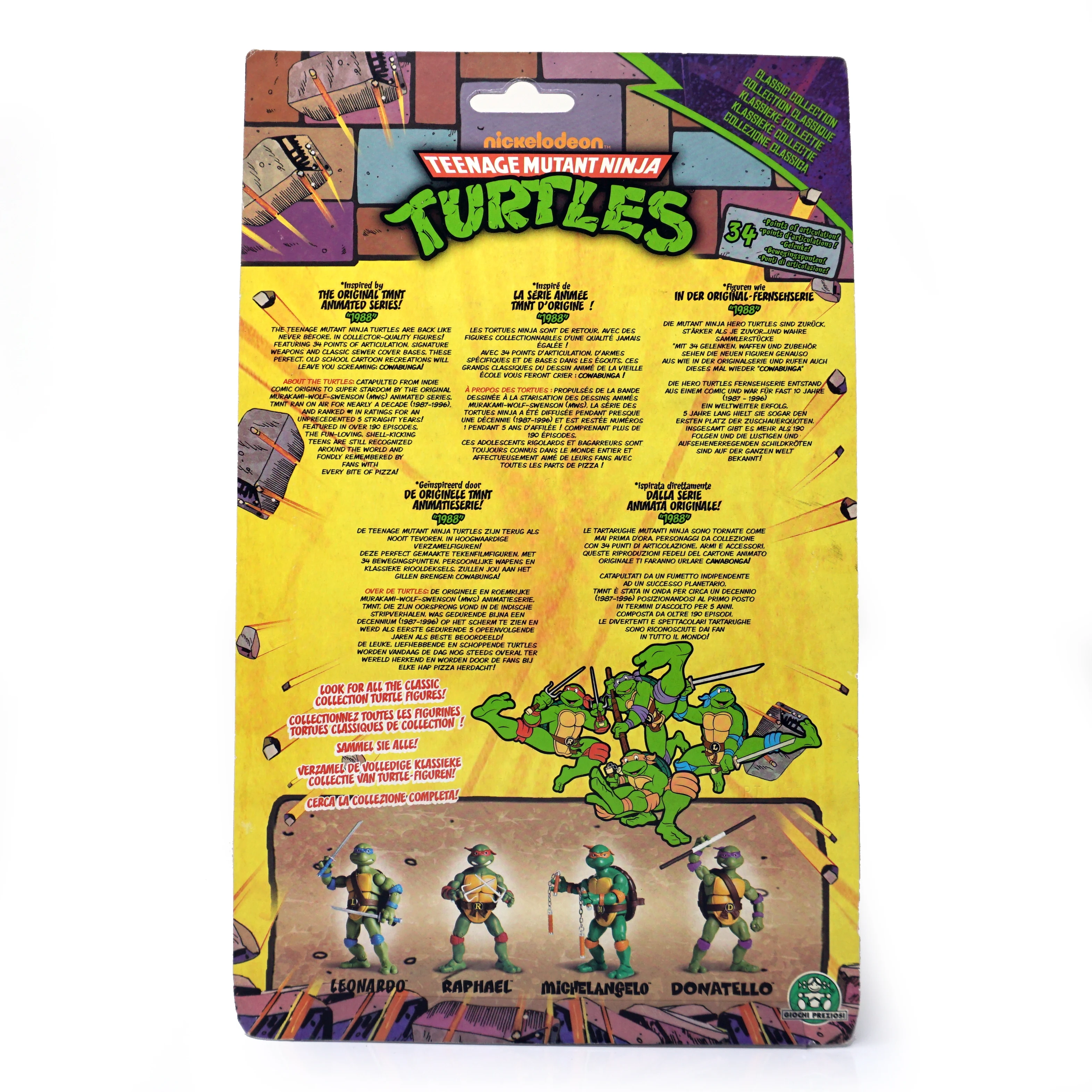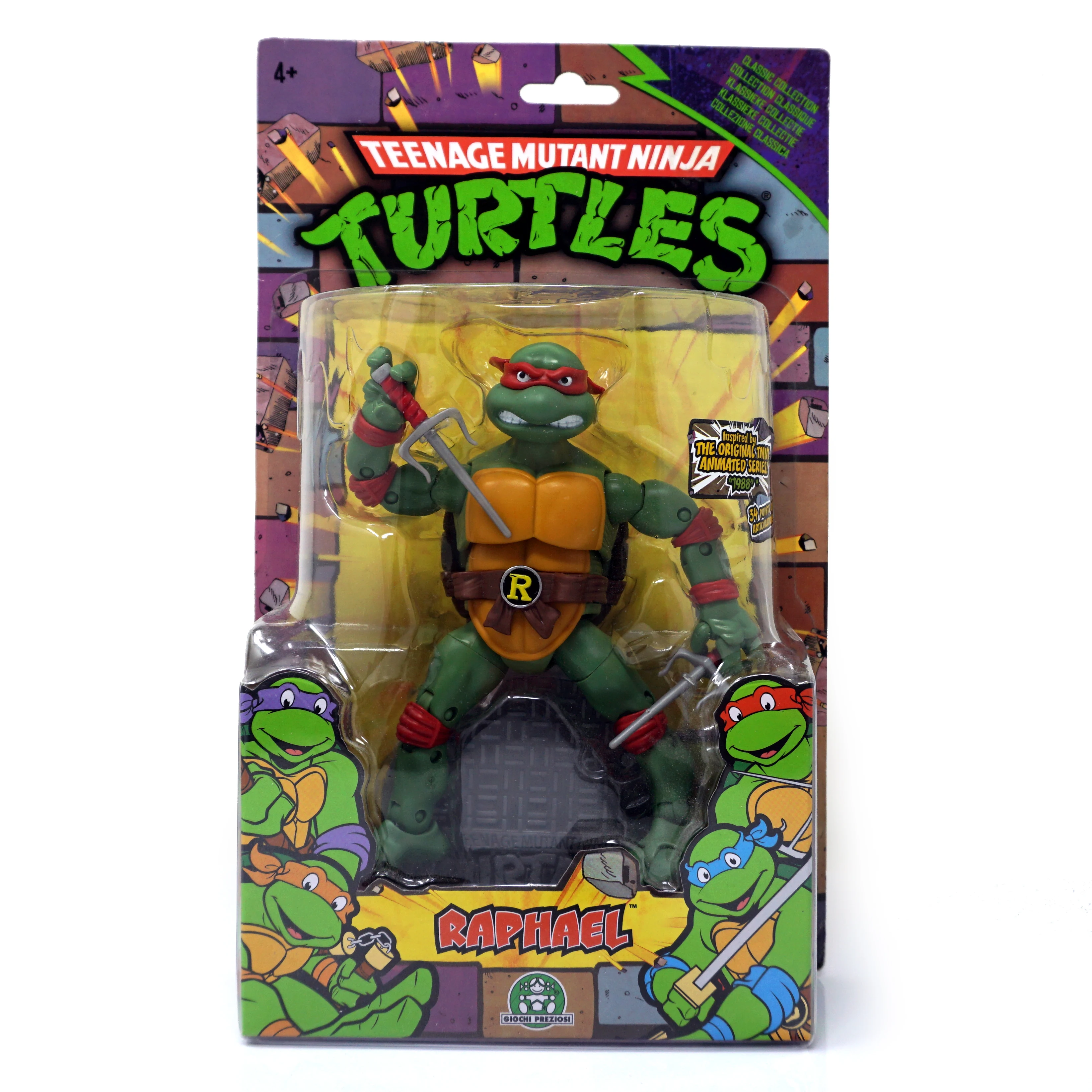 The Classic Collection Action Figures reflect the look of the original TMNT characters from the 80’s TV show. Each figure stands 6" tall, features multiple points of articulation and is authentically detailed to appeal to the true action figure collector.