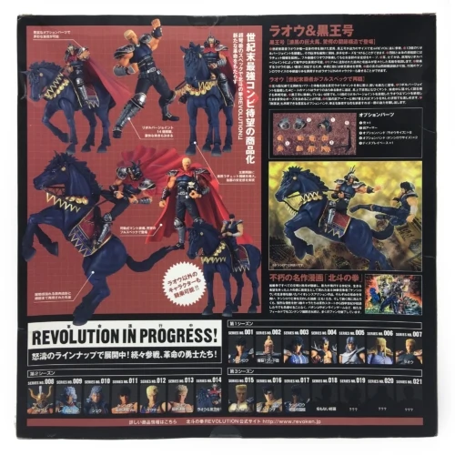 Series of celebrative action figures made by Kaiyodo for the 25th anniversary of Hokuto no Ken. These are models with Revoltech system (Revolver Technology), or with numerous articulations and pivot points that guarantee maximum posability and customization.