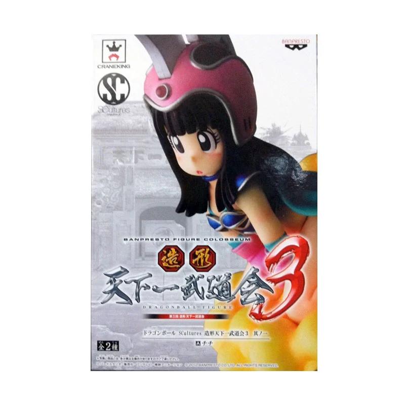 The Scultures BIG Series are the resulting products from Banpresto's Figure Colosseum Budokai Tenkaichi Contest. In the contest, Japans best sculptors go head to head, creating new Dragonball Statues. Voting is conducted in Japan and the winner is crowned King of the Tenkaichi. Sculptor Hisatake Kiyama is no stranger to figure competitions, having cut his teeth through a veritable gantlet of events. His Figure Colosseum 3finalist is a charming take on Chi-Chi’s original design. As a fan of Toriyama’s girl characters, Kiyama wanted his figure to emphasize how cute and ridiculous Chi-Chi’s outfit in the original Dragon Ball is. Using Goku’s Flying Nimbus as a base only serves to amplify that!