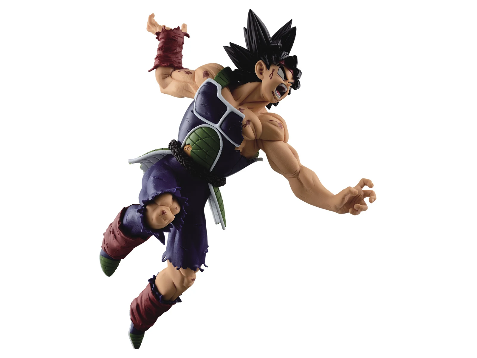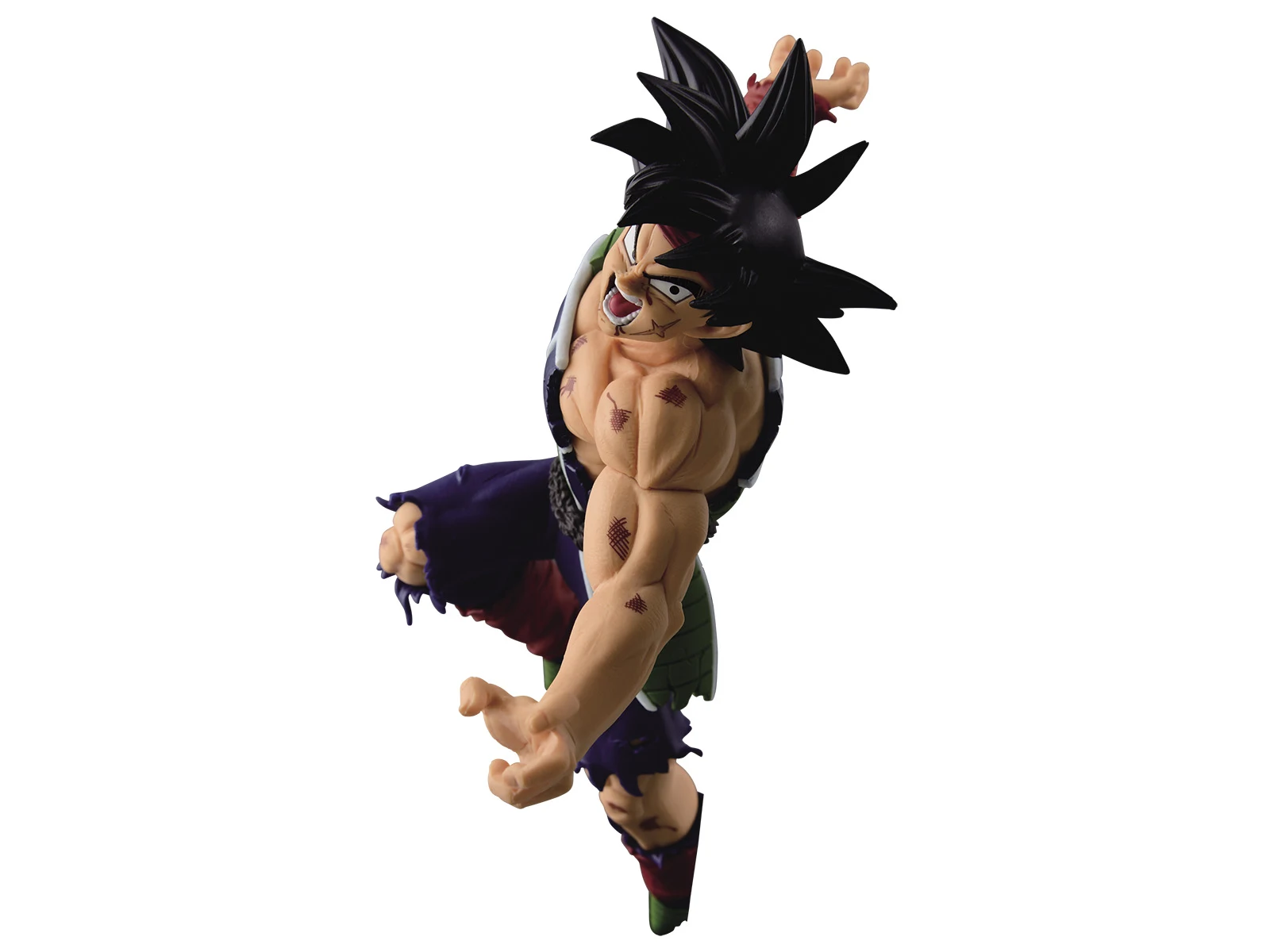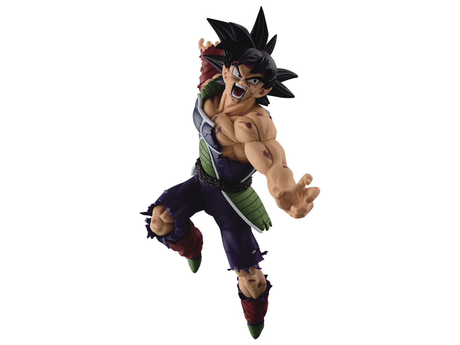 The Scultures BIG Series are the resulting products from Banpresto's Figure Colosseum Budokai Tenkaichi Contest. In the contest, Japans best sculptors go head to head, creating new Dragonball Statues. Voting is conducted in Japan and the winner is crowned King of the Tenkaichi. This battle-damaged Bardock is the other winner of Figure Colosseum 5! It’s amost overwhelming to see the two gold medal figures of Goku and Bardock right next to each other. The father and son duo exude an incredible amount of strength. Sculptor KOZO knows the importance of keeping his figures a balanced size, however. When a 2D image is adapted into a 3D figure, a balance must be drawn between a normal human body and the more stylized Dragon Ball Z proportions. This figure strikes the balance very well, balancing Bardock’s Saiyan strength with a pose exuding human effort.