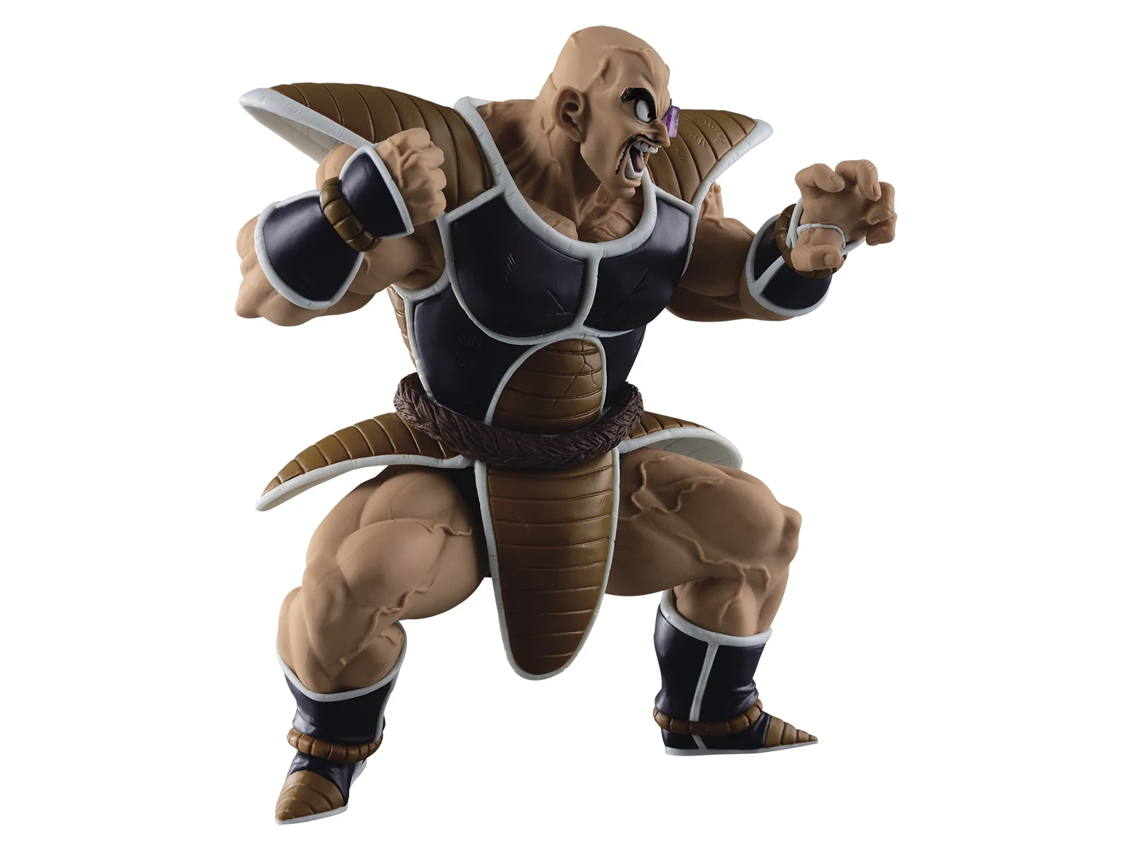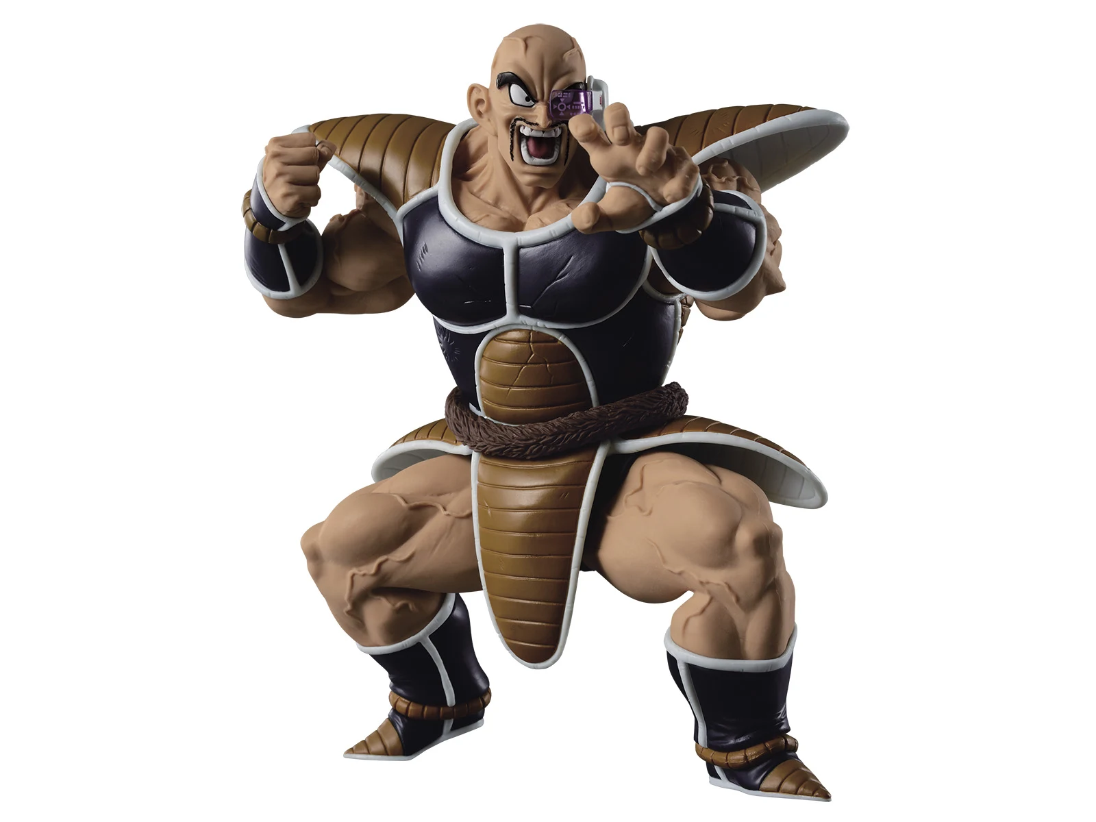 The Scultures BIG Series are the resulting products from Banpresto's Figure Colosseum Budokai Tenkaichi Contest. In the contest, Japans best sculptors go head to head, creating new Dragonball Statues. Voting is conducted in Japan and the winner is crowned King of the Tenkaichi. Although Nappa tends to be overshadowed by his fellow Saiyans, he’s one big guy, and this Figure Colosseum 5 finalist makes him look HUGE. Sculptor Takamatsu took a few liberties with Akira Toriyama’s original design to make Nappa look this imposing, though. For one thing, he accentuated the armor, giving it more physicality and exposing more muscle. To avoid making Nappa’s muscles look too flat, Takamatsu took influence from later large DBZ characters like Spopovich who have bigger, more detailed muscles. By keeping Nappa’s silhouette the same, he managed to create a version of Nappa that looks like it could shove the original Nappa into a locker.