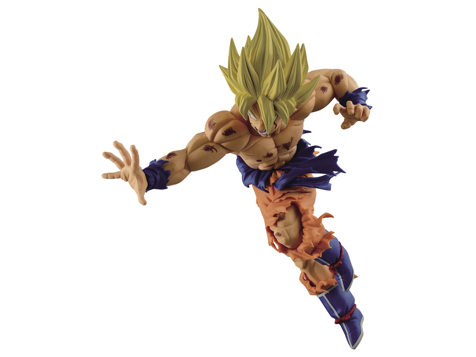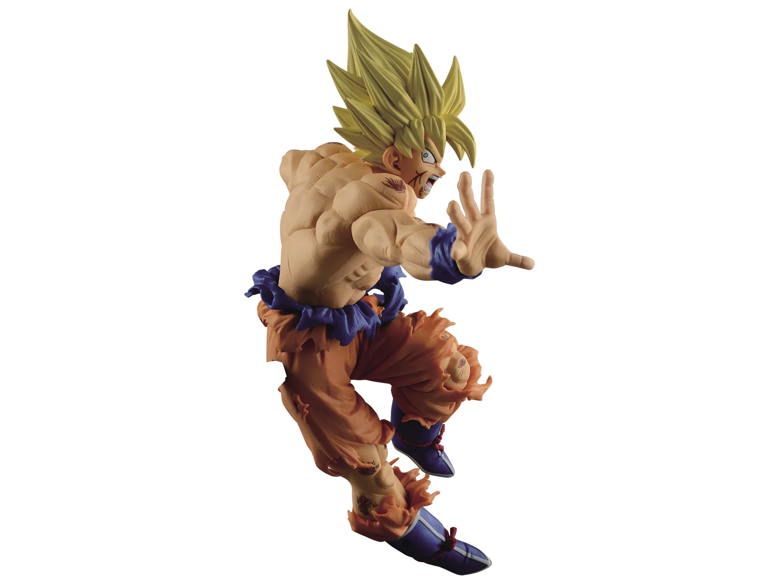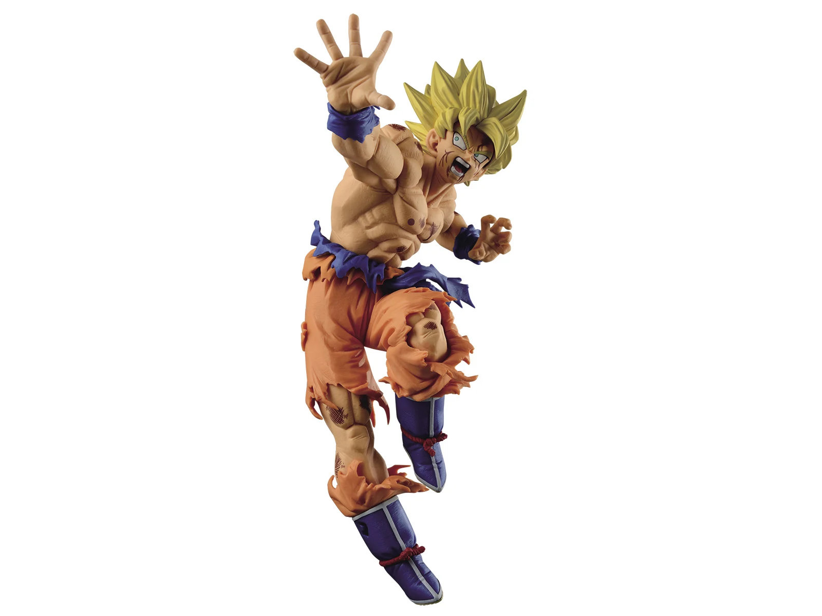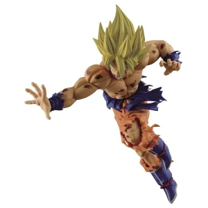 The Scultures BIG Series are the resulting products from Banpresto's Figure Colosseum Budokai Tenkaichi Contest. In the contest, Japans best sculptors go head to head, creating new Dragonball Statues. Voting is conducted in Japan and the winner is crowned King of the Tenkaichi. One of the two winners of Figure Colosseum 5 portrays Goku at the end of his vicious battle with Frieza. Getting the figure to match the manga perfectly required a great deal of work from sculptor Hiroyuki Nakazawa, due to Goku’s battered muscles and tattered gi. Far from making Goku look weak, however, this battle damage just adds to the ferocity of Goku’s pose here.