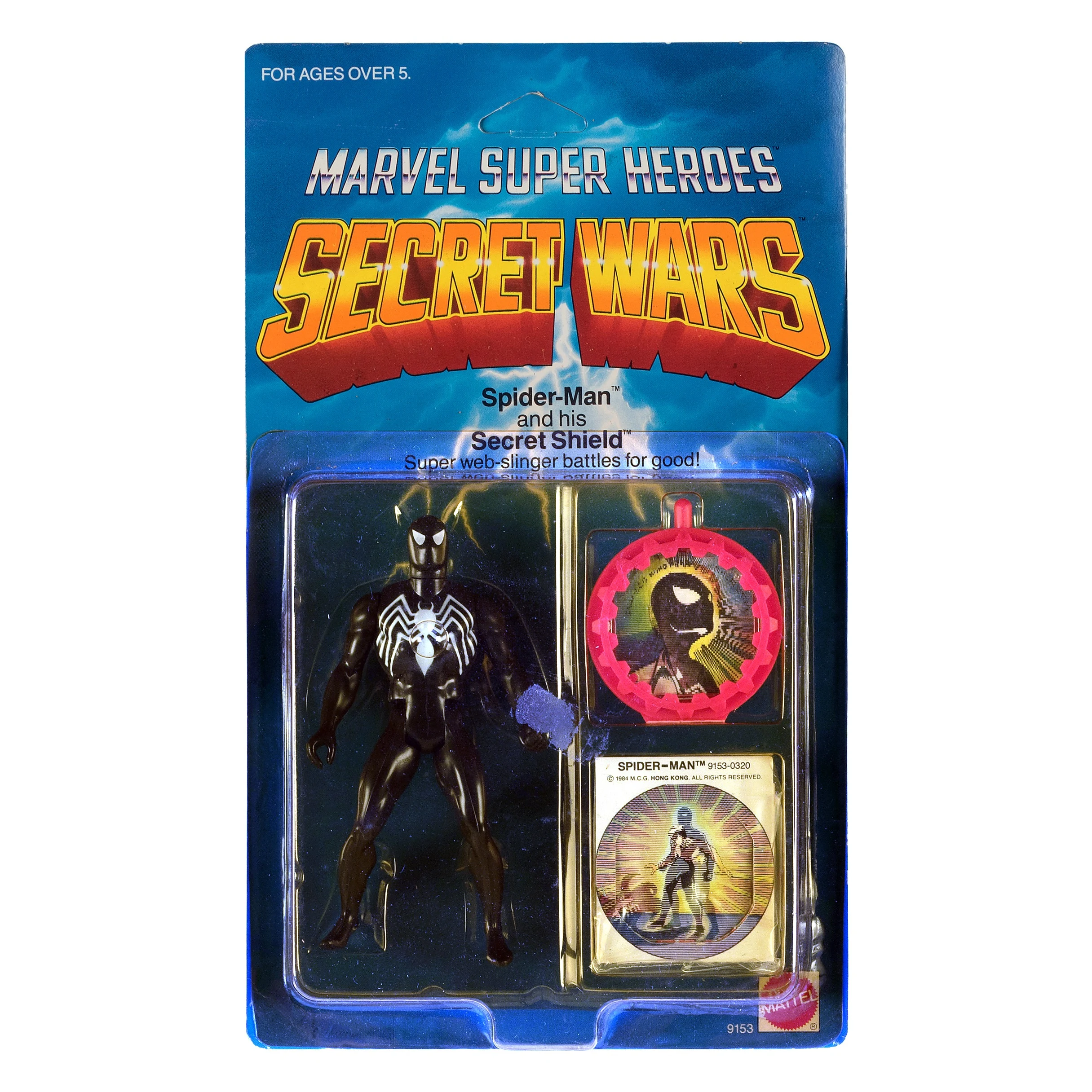 Spiderman's appearance in the Secret Wars comics and toy line is notable for several reasons. Most notable is the fact that this is the only figure to have two full variations. The first Spiderman is portrayed in his classic red and blue costume familiar to most comic fans. The second version of this figure is the legendary black suit he acquired in issue #8 of the Secret Wars limited series. As noted elsewhere (see the summary for Issue #8), the appearance of the black costume was to have many ramifications for future continuity in the Marvel Universe. Both versions of this figure are made from the same mold. Only the paint details differ. The red and blue version is a nice recreation of the classic costume. However, the web design found on the red sections is painted separately and is prone to wear easily. Additionally, these web details are not completely painted over the whole figure. The webs are missing from places like the backs of the boots, the insides of the forearms and on the figure's shoulders. Despite this minor complaint, this is a very nice version of the classic Spiderman. The black costume version was a surprise for many fans. Re-released to capitalize on the character's popularity, the black version has become one of the most sought after figures in the entire line. Unfortunately, the white paint details are easily worn off, making this another figure that is difficult to find loose in mint condition. Both versions of the webhead would find their way into the Toy Biz lines of figures after nearly a decade of dormancy. Spiderman would eventually hit the big time with his own line of figures that accompanied the debut of the webslinger's latest animated series.