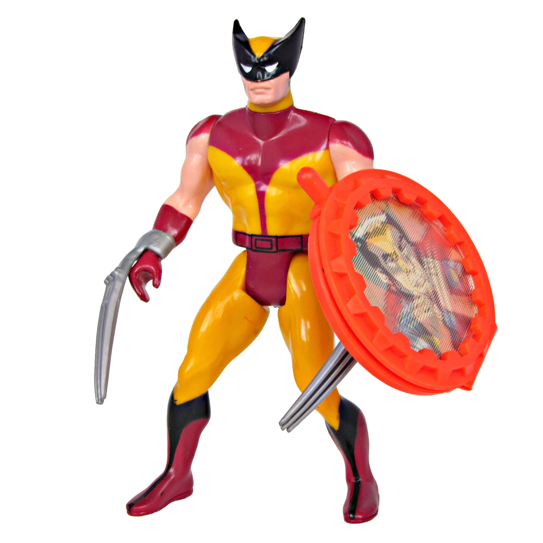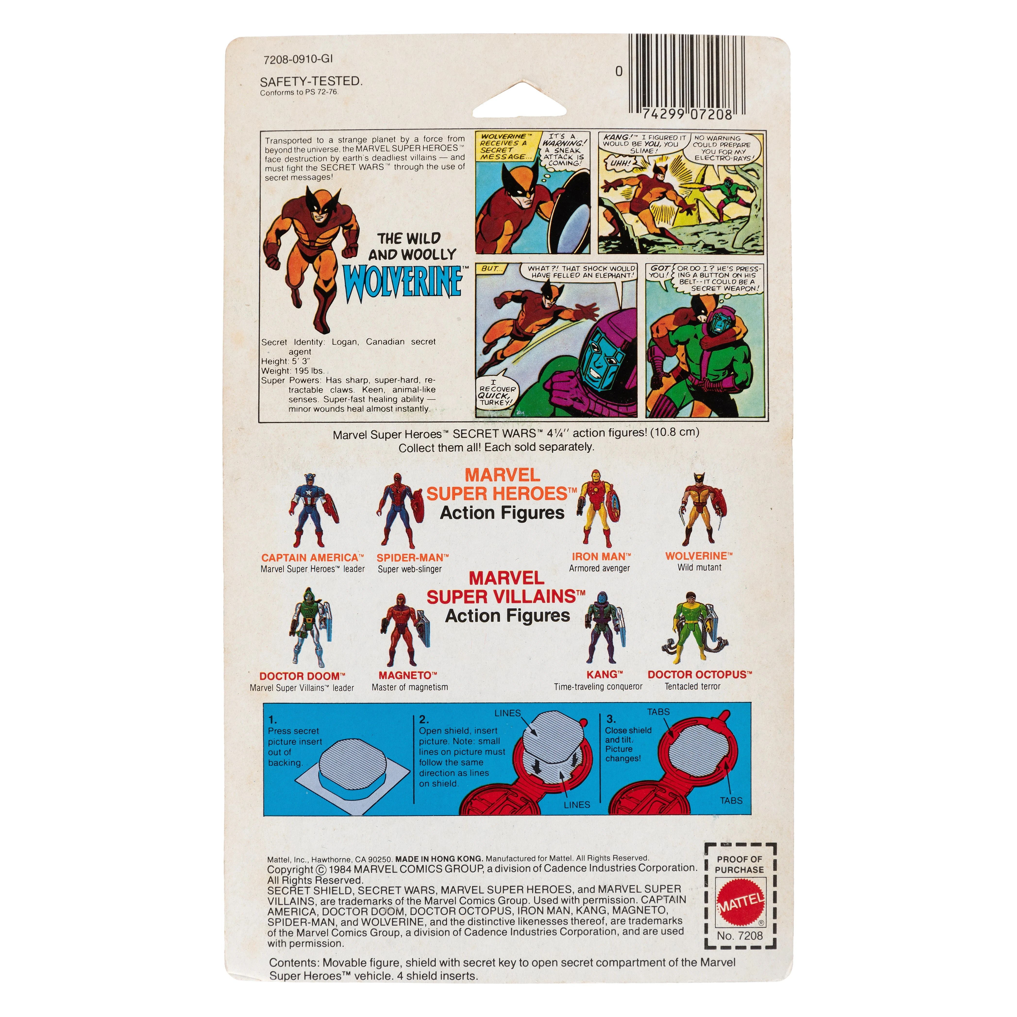 This figure was a landmark for Marvel. It was the first incarnation of what was to become one of their most replicated characters: Wolverine. The new X-Men had only just gained popularity at the tail-end of the Mego era in the 70's and thus none of the X-Men were ever created for the World's Greatest Superheroes line. However, with the growing popularity of the new X-Men lineup (under the auspices of Chris Claremont and John Byrne), the team was featured prominently in the Secret Wars comics. Of the new team, Wolverine was a fan favorite. He would go on to be the most produced character of the later Toy Biz X-Men line.The Secret Wars Wolverine came with two claw attachment accessories. These were easily lost and are often missing from loose figures. As with many of the Secret Wars figures, Wolverine had some detail painting on the figure's body that was easily worn off. On this figure, the area is the belt-buckle, detailed in black. The figure is notable for being the only figure in the entire line to have a significant variation: The infamous claws. Convention holds that the silver claws version is more readily found than the apparently rarer black claws version. To date, here has been no satisfactory explanation for the existence of both Black and Silver claws versions. Although Wolverine was a popular figure in this series, the claw differences are generally believed to be a variation rather than a separate release (as was done with the Black Costume Spiderman).