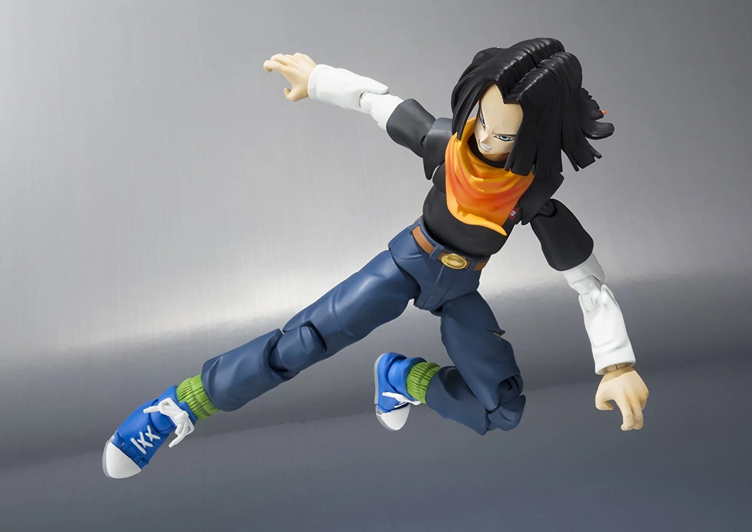 The popular S.H.Figuarts Dragonball saga continues! Following the release of S.H.Figuarts Android 18 comes the appropriate follow-up of the character's twin, Android 17. A web exclusive in Japan, 17 will be made available to fans in North America via Bluefin Distribution. This deluxe action figure set features a full-array of accessories, including the android's gun and holster, interchangeable belt and bandana, a total of 3 optional faces, a pair of folded arms, alternate hair pieces, and a full set of interchangeable hands (6 right/5 left). Ideal for pairing up with S.H.Figuarts Android 18 for dual attacks on the Z Warriors, as well as other iconic scenes from the series!