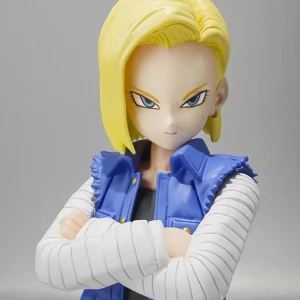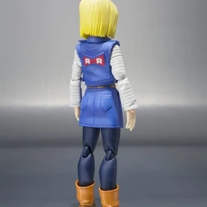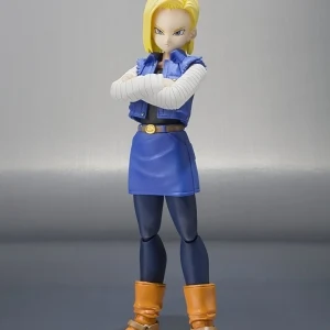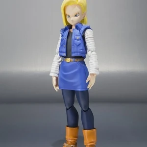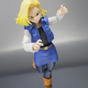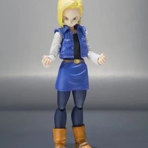 Look to the Future! The S.H.Figuarts Dragon Ball legacy continues with the beautiful, but deadly Android 18. This special release marks the first female Dragon Ball character to join the ranks of the S.H.Figuarts line. Two new option parts are featured for the previously released Figuarts Krillin, including an all new head for enacting the famous scene when 18 planted a kiss on the cheek of the terrified hero and a brand new hand to hold the included Android destruction switch created by Bulma. Also features a full array of accessories for Android 18 herself, including a pair of folded arms, swappable hair pieces, 4 interchangeable faces, as we as 3 different sets of hands to enact various poses. Fearsome on her own, she is twice as dangerous with her twin brother, 17. Will your S.H.Figuarts Dragon ball heroes be able to stop her? The answer lies with you.