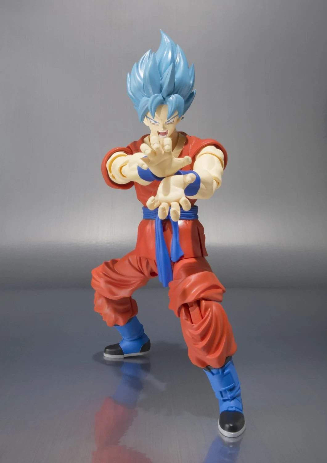 From the new animated feature film Dragon Ball Z: Resurrection 'F', comes Son Goku as he appears as Super Saiyan God Super Saiyan!! This new edition to S.H.Figuarts is as super as it sounds, with Goku sporting his icy blue hair and new 'gi'.