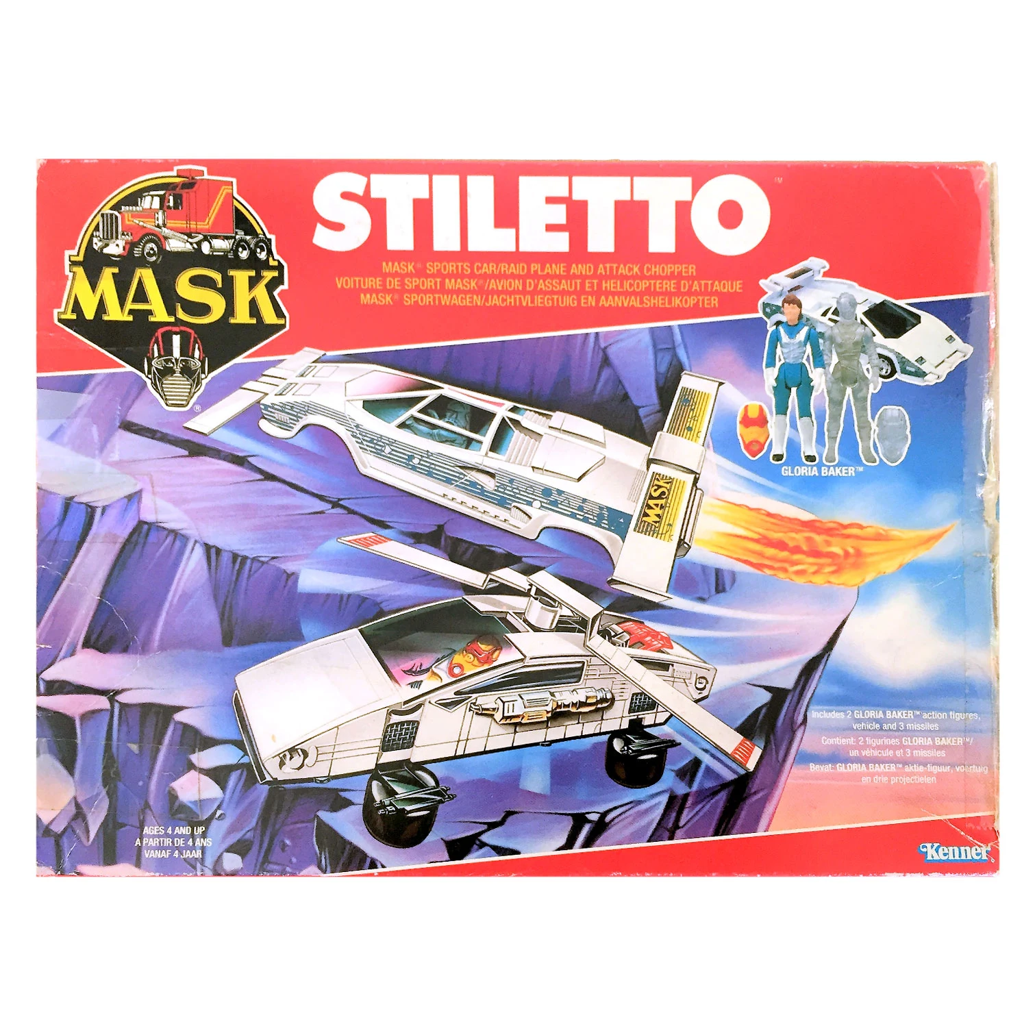 A Lamborghini Countach race car that can split into a helicopter and an assault plane. Her mask is New Collider which produces her holographic clone.