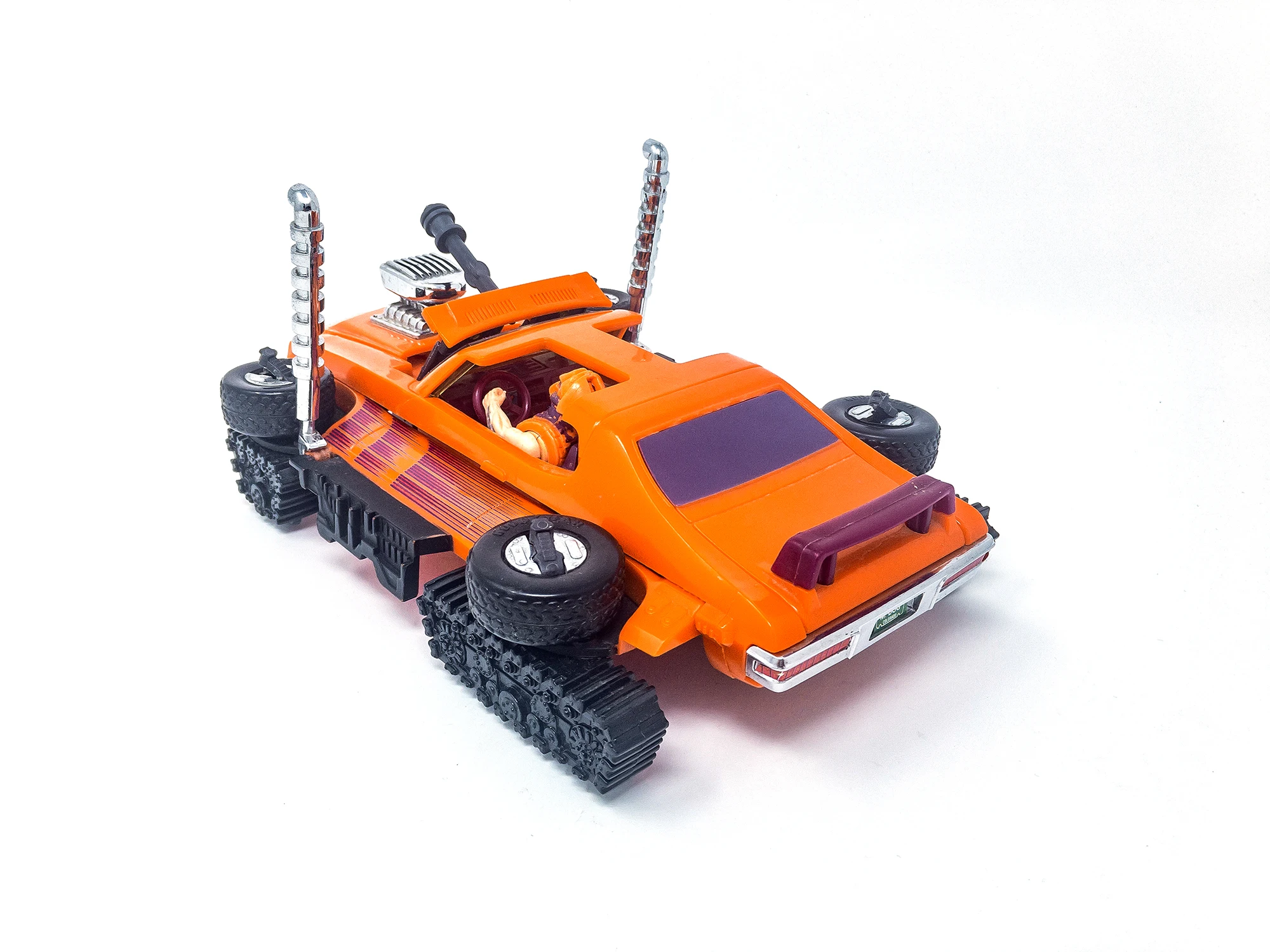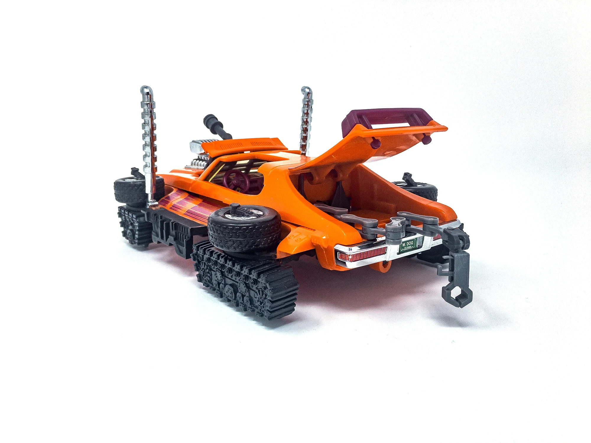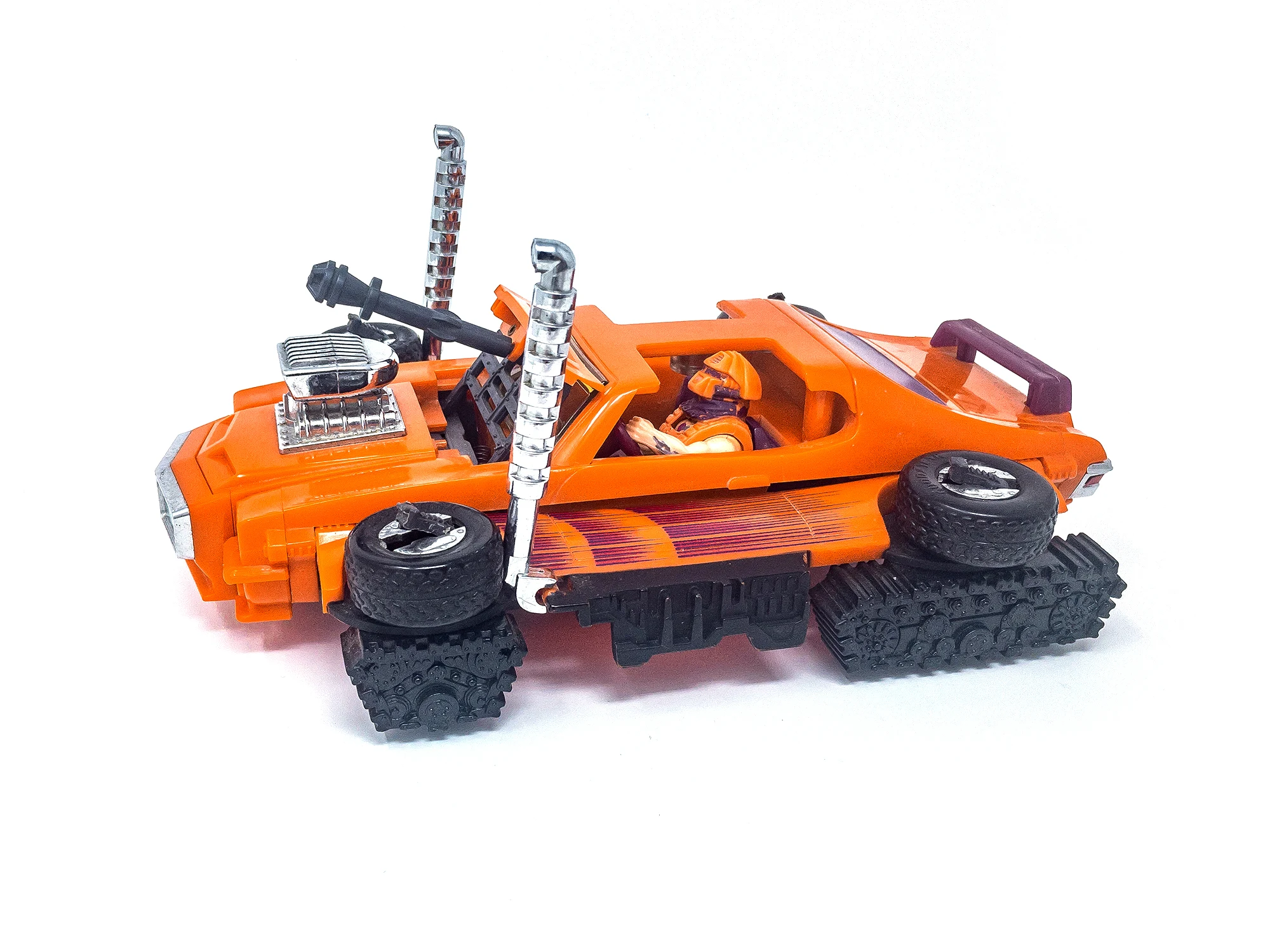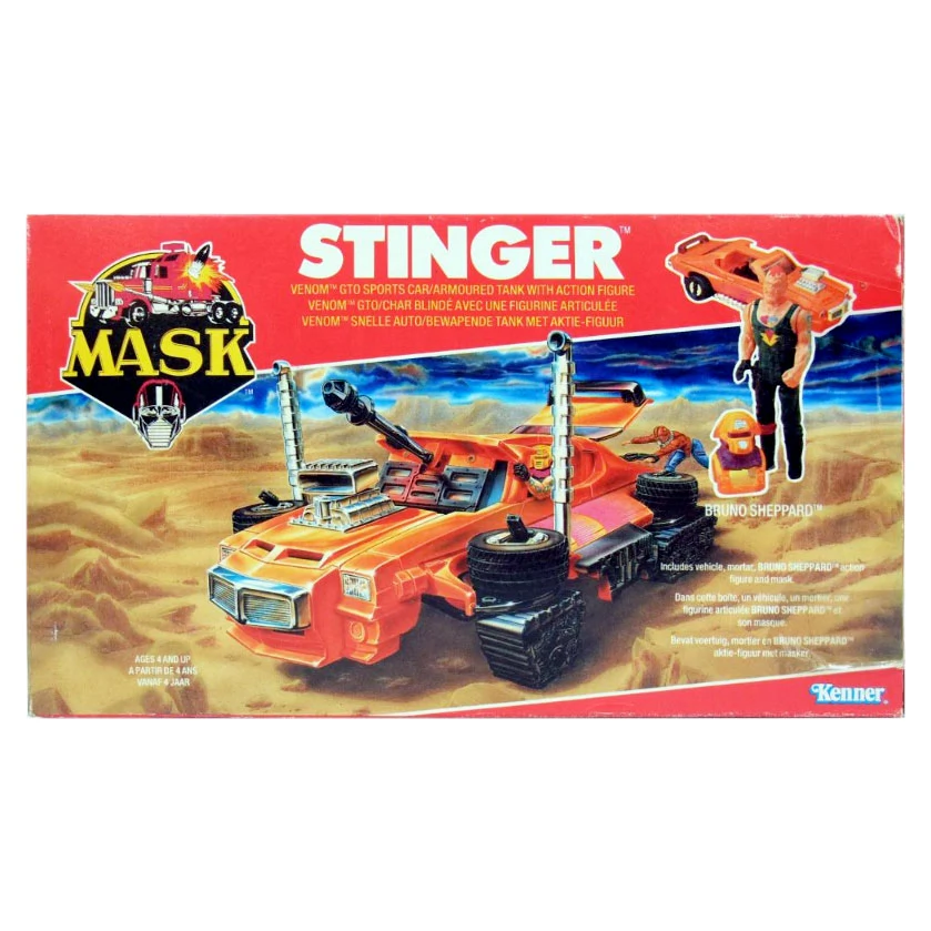 An orange Pontiac GTO that turns into a tank. First show appearance: episode 43. His Magna-Beam mask can attract, repel or rip apart magnetic objects. In some episodes, Stinger was referred to as Scorpion.