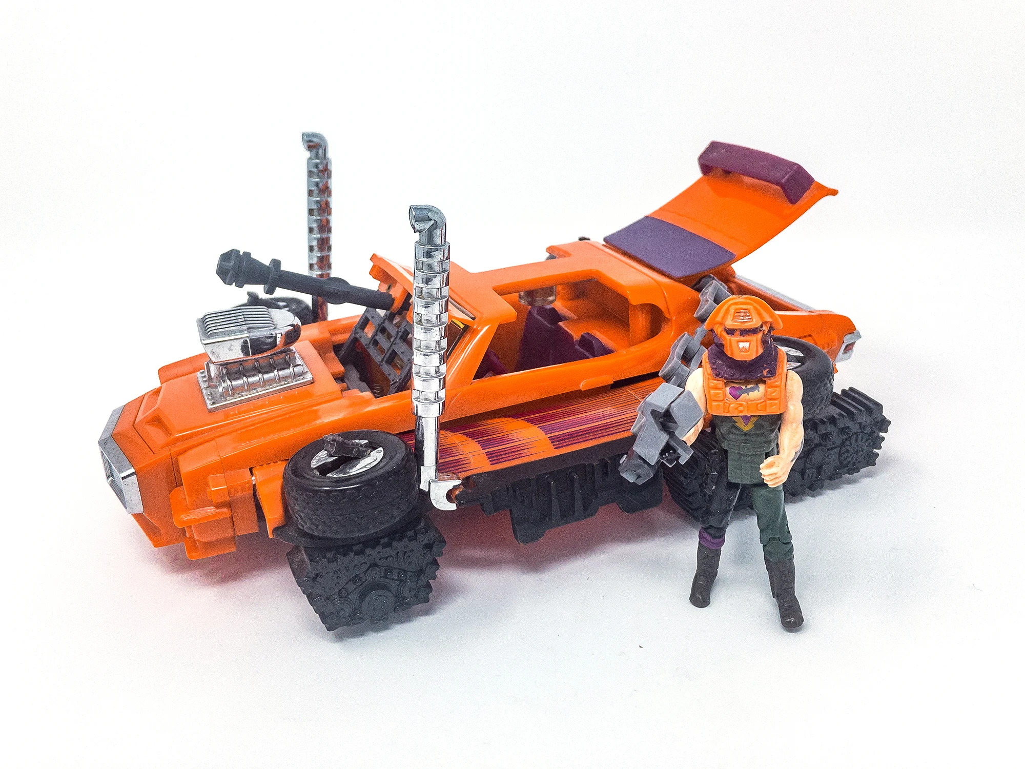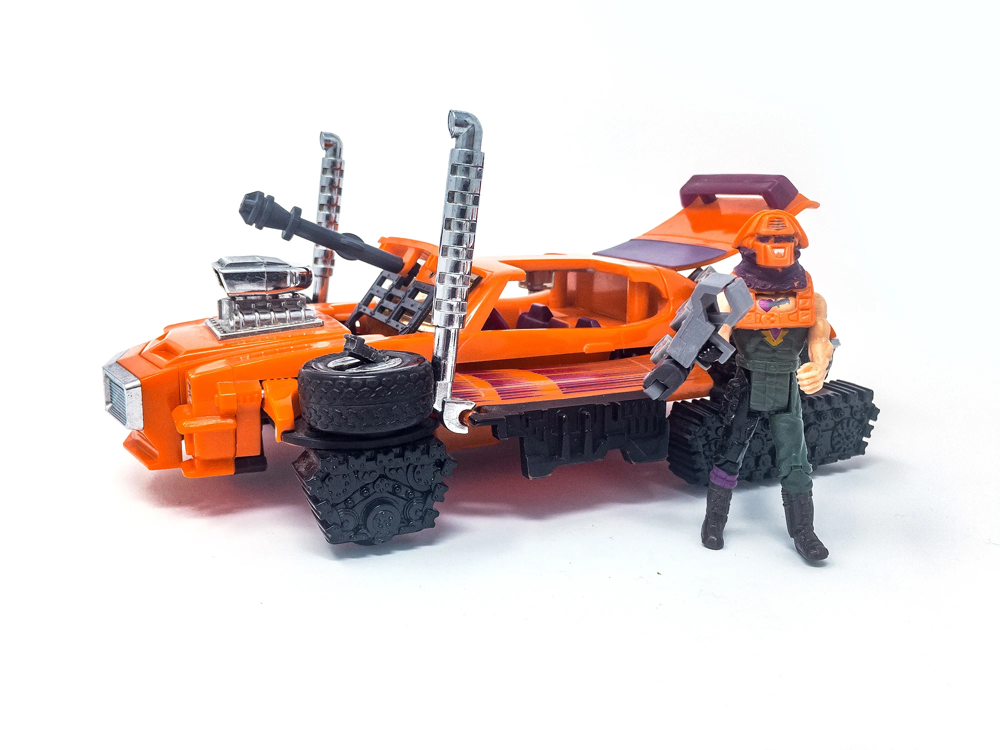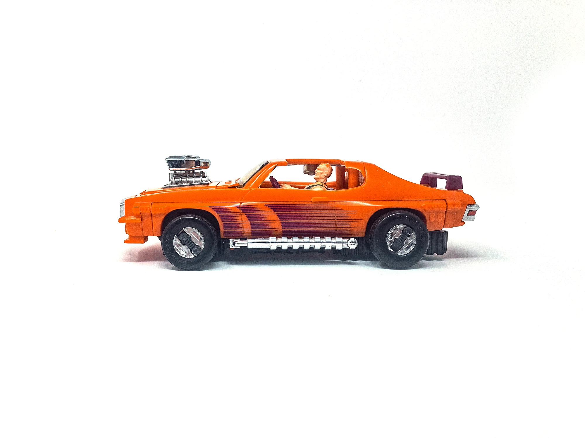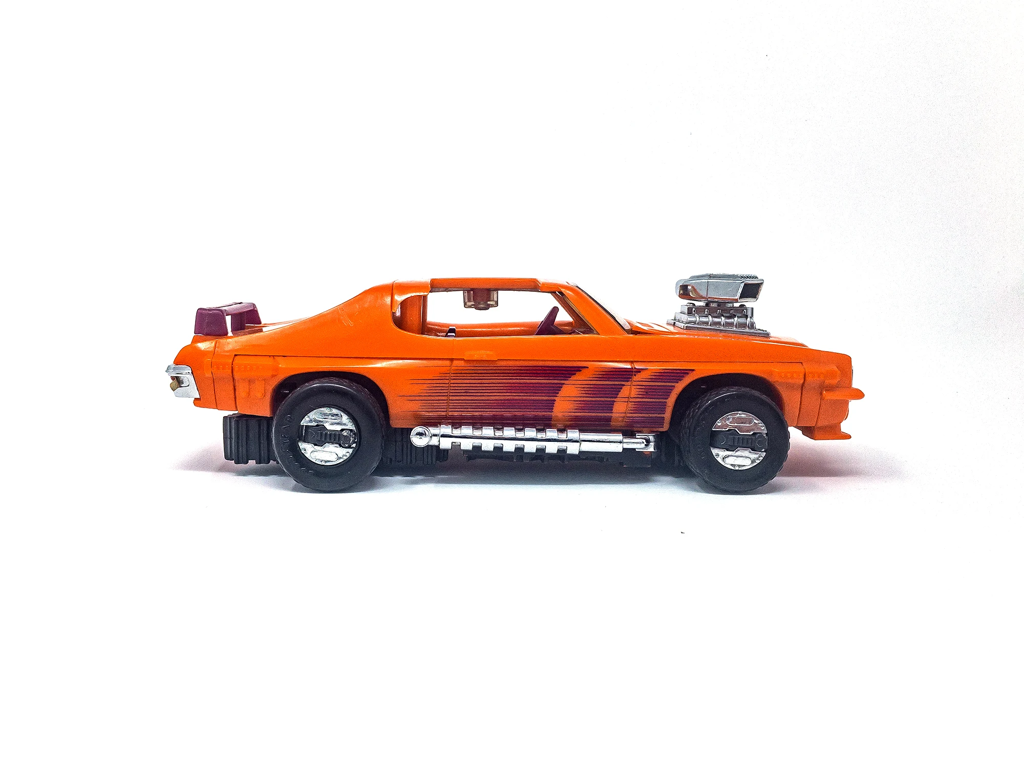 An orange Pontiac GTO that turns into a tank. First show appearance: episode 43. His Magna-Beam mask can attract, repel or rip apart magnetic objects. In some episodes, Stinger was referred to as Scorpion.