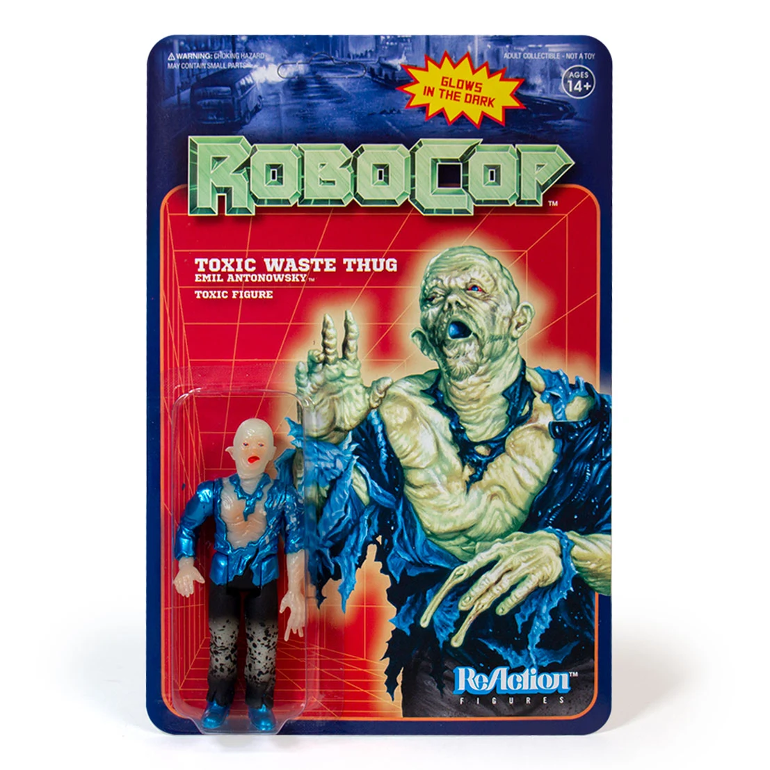 Robocop GID ReAction Figures: ”Dead or alive you’re coming with me!” Arriving from futuristic Detroit to deliver justice to NYCC 2019 are the limited edition glow-in-the-dark Robocop, Damaged Robocop, and toxic waste Emil Antonowsky!