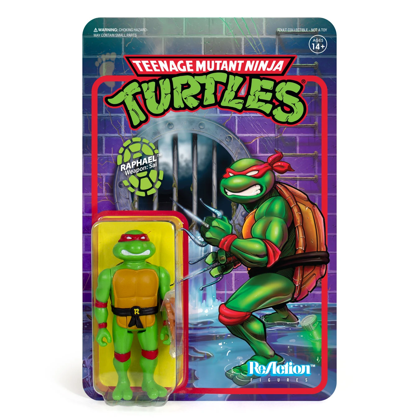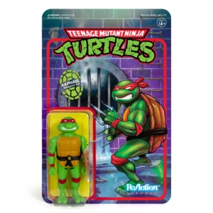 Cowabunga! The Teenage Mutant Ninja Turtles join Super7's 3.75-inch ReAction Figure world! Raphael comes armed with a pair of Sai and a slice of pizza (natch!) on a card back featuring brand new art.