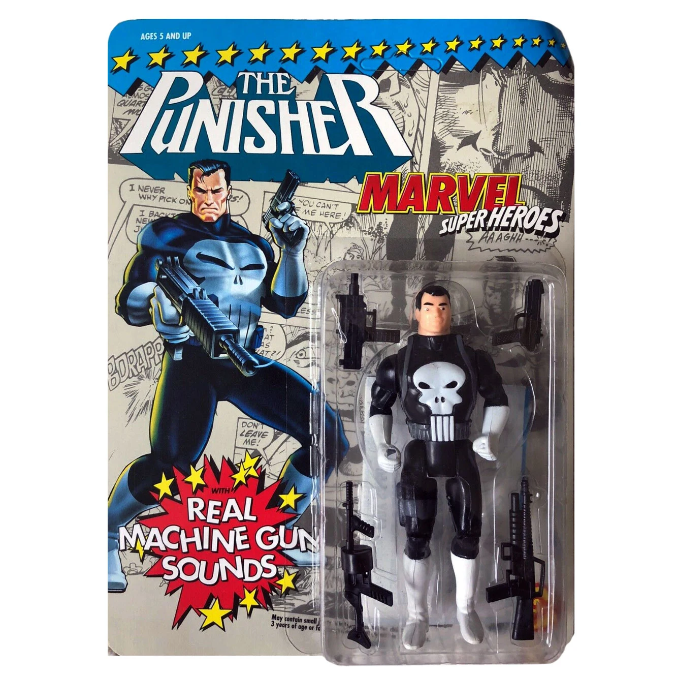 Back card : The Punisher hates what criminals and organized crime do to people and society. That's why he's waging a one-man war to wipe out crime. To help him reach his goal, he's assembled the most explosive arsenal a man can have. Because he's an unmatched expert in guerilla warfare, he can silently hunt down almost any criminal. The only time the criminal will know when the Punisher's on his trail is when the Punisher explodes into action.