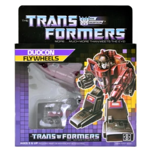 Flywheels' robot mode is made from the combination of two separate vehicles that make up his alternate mode: a maroon F-4 Phantom II fighter jet and a brown self-propelled howitzer of vague origin. Pressing the jet onto the tank's turret via friction-hold tabs triggers a spring-loaded autotransformation into the combined robot mode. Splitting the robot into the two vehicles is an entirely manual affair, however. His only robot-mode articulation is the sideways-swinging movement of his arms at the shoulder, but thankfully his rifle has a 5mm post on the back end so it can at least point forward in robot mode, even if he has to hold it like a sword to do so. The rifle can also be mounted on the tank's front end or on the underside of the jet nosecone.