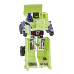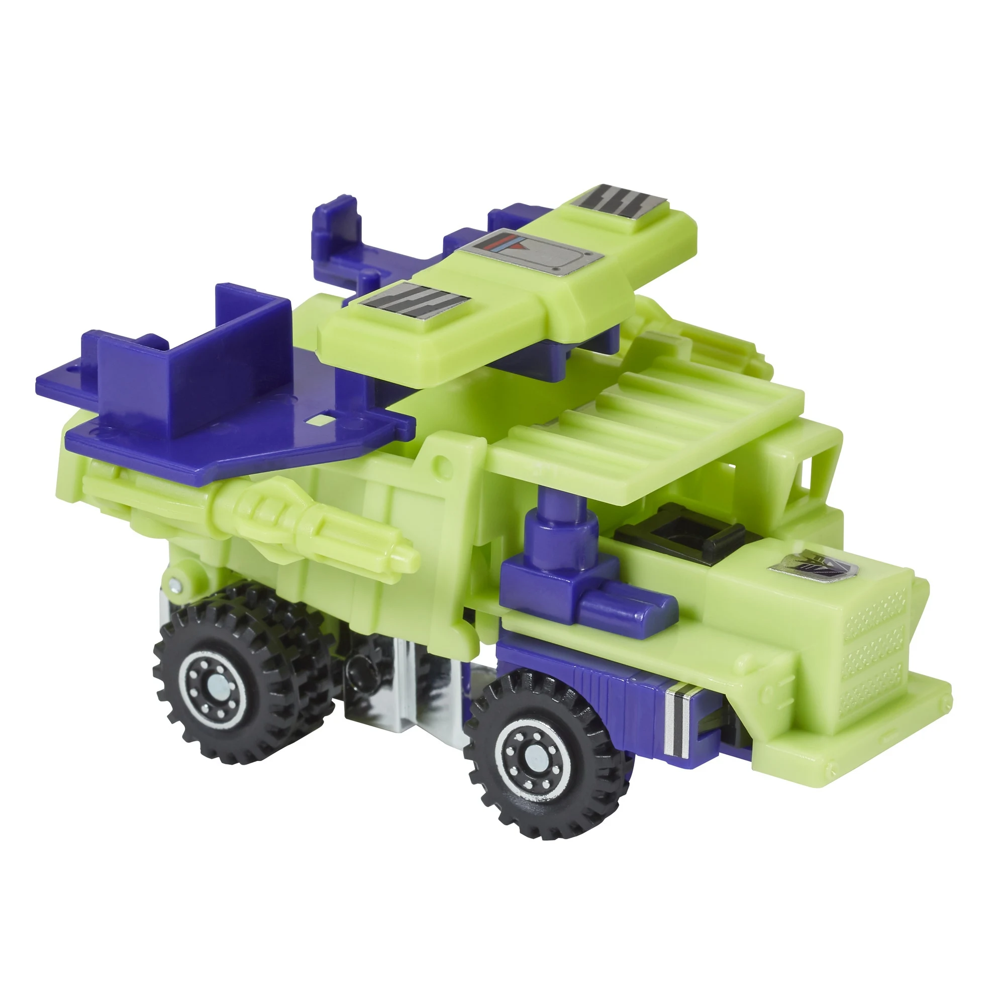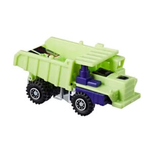 Long Haul was originally from Takara's Pre-Transformers Diaclone toyline, as Construction Vehicle Robot No. 5 Dump Truck. He transforms into a bright green Hitachi DH321 mining dump truck. The dumping tray is articulated, but due to design, the forward lip of the tray (which hangs over the cab of the truck) is not actually connected to the tray itself. In contrast to the majority of truck mode Transformers toys, he has dual rear wheels, which allows him to roll more easily. The "Missile Mount" and "Wing" can be attached to vehicle mode to create the Attack Truck. In robot mode, Long Haul is one bright green robot with purple arms and black fists, making him quite monochromatic. As with several of his teammates, due to his transformation sequence, Long Haul has a better-than-usual range of articulation for a Generation 1 toy. He can combine with his fellow Constructicons to form Devastator, functioning as the lower torso. There are two variations of Long Haul: one with a slotted chest, and one without. On the European continent, Long Haul was initially released individually alongside the other Constructicons by Hasbro's subsidiary Milton Bradley (MB) in 1985. In 1986, Long Haul and the other Constructicons were re-released in Europe, albeit this time in "Hasbro"-branded packaging (but manufactured by Joustra). The main difference with all other releases thus far was that the Constructicons' main color was now yellow instead of green. These are not to be confused with the later, non-combining yellow European Constructicons, nor with the yellow Generation 2 Constructicons (see below for both). The purple chimney on Long Haul's right shoulder can coincidentally function as an Armada-style Mini-Con port.