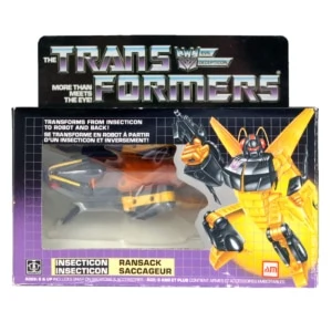 As a redeco of the unreleased Armored Insect Battalion Beetras Beet-Vadam, Ransack changes into a predominantly black and yellow locust. In robot mode, he is completely unable to move his arms forward, which makes his shield and gun pretty damn useless.