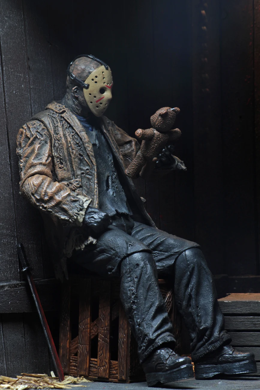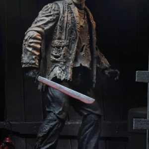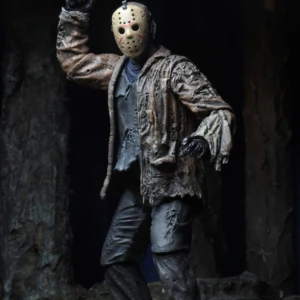The revenant Jason from the epic 2003 slasher mash-up Freddy vs Jason joins NECA’s Ultimate line! Resurrected by Freddy to terrorize the residents of Springwood, Jason begins his murderous rampage again. But when he won’t step aside for Freddy, a terrified town is caught in the middle of their battle! This new Jason figure is even more sizable than other Ultimate Jasons, as appropriate for a horror showdown on the movie’s scale. He comes with 3 removable masks, 2 machetes (regular and bloody), teddy bear, and fire effect that can attach to either machete to recreate the final blistering battle. Collector-friendly window box packaging with opening flap.