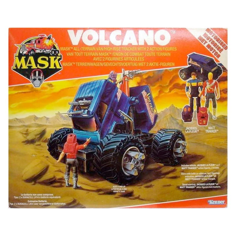 A blue monster truck van which converts into an attack station where he uses the mask Lava Shot which fires blobs of molten metal. First show appearance: episode 47.